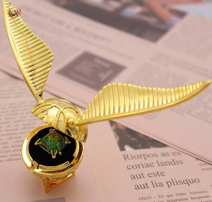 Crafted to mimic the legendary Golden Snitch of the wizarding realm, this exquisitely made treasure unveils a concealed space tailored for a ring!